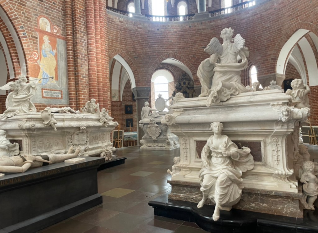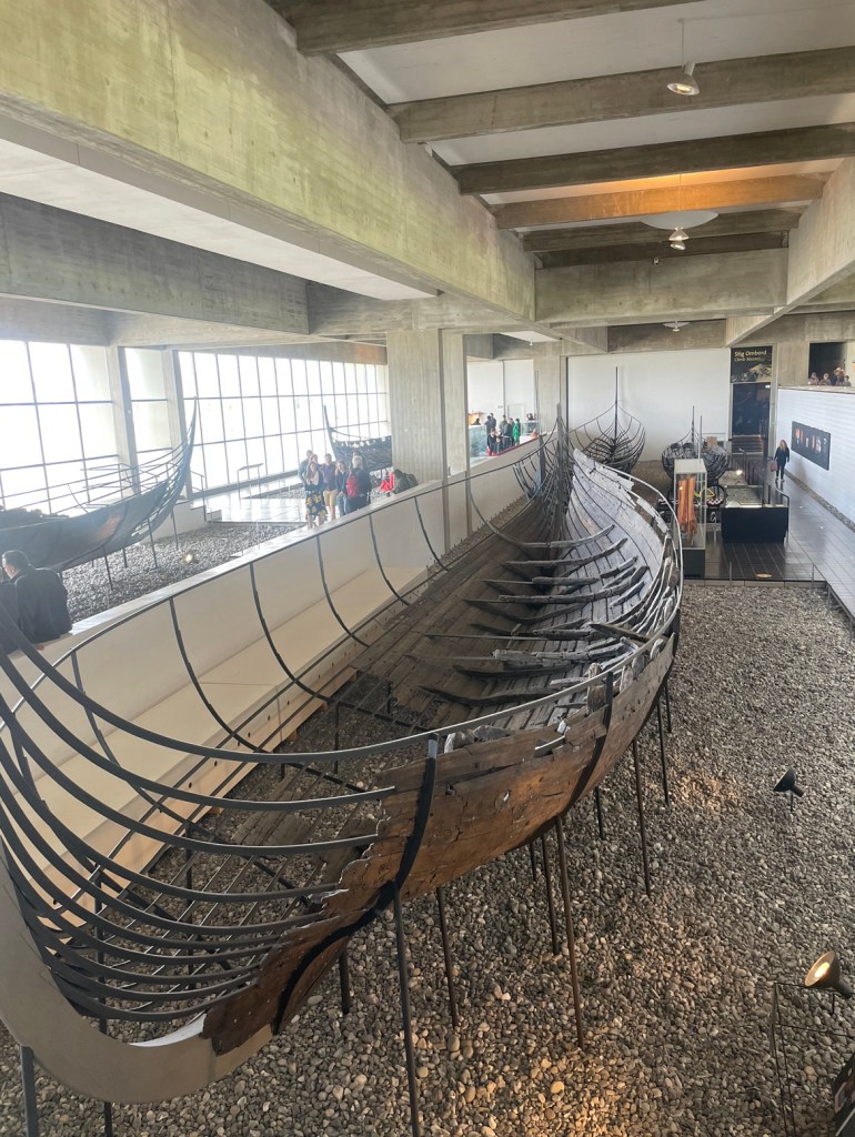 On day four, we woke up bright and early to see the Viking museum and Rockslide cathedral. It was a lot of walking to either place, but the views were beautiful, making the whole experience much more enjoyable. The Viking ship museum had actual authentic ships they could salvage that was still in excellent condition even after just sitting under the water for many years. They purposely sunk perfectly intact ships at the mouth of the entrance to the docks to keep other ships from sailing in to prevent invasions. After the museum, sadly the water was a little too rough for us to try sailing on a Viking ship, but we had a fantastic platter of meat and cheese to make up for it. After exploring the museum and walking around the boat docks, we made our way to the Rockslide cathedral. I enjoyed this experience because I was not expecting the many elaborate coffins I would see. It was interesting to see how each king or person of high status would decorate their final resting place and how designs would change over the years. We even viewed the current queen’s coffin, and in my opinion, it was unnerving to me to still be alive and have your coffin just waiting for you to pass. Even then, the cathedral was beautifully made, and I could tell that it took many years to sculpt every work of art that resides there today.