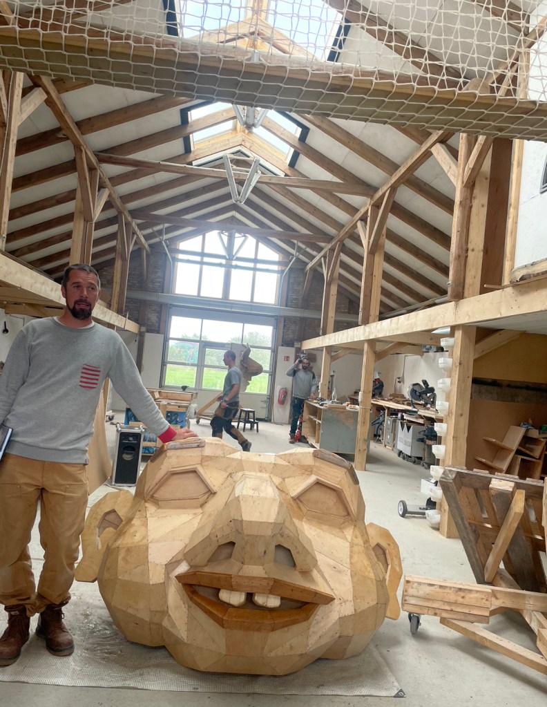 Going to Thomas Dambo Studio was one of my favorite days traveling to Denmark because of how hands-on we got to be. We finally got to meet the famous troll artist that has created a whole storyline and real-life sculptures. I thought it was cool he was trying to bring his characters to life and even the environment they live in by transforming his workspace into the story he tells. After a tour of his studio, we were given the opportunity to help build an area for hanging out and relaxing after a long day of work. We all did this very safely, of course, but using tools and actual wood to build something was a blast. I love digital art, but sometimes it is gratifying to make something physically and get your hands dirty. I also met an adorable orange cat on the property who liked to follow us around, and I think everyone might have fallen in love with him.