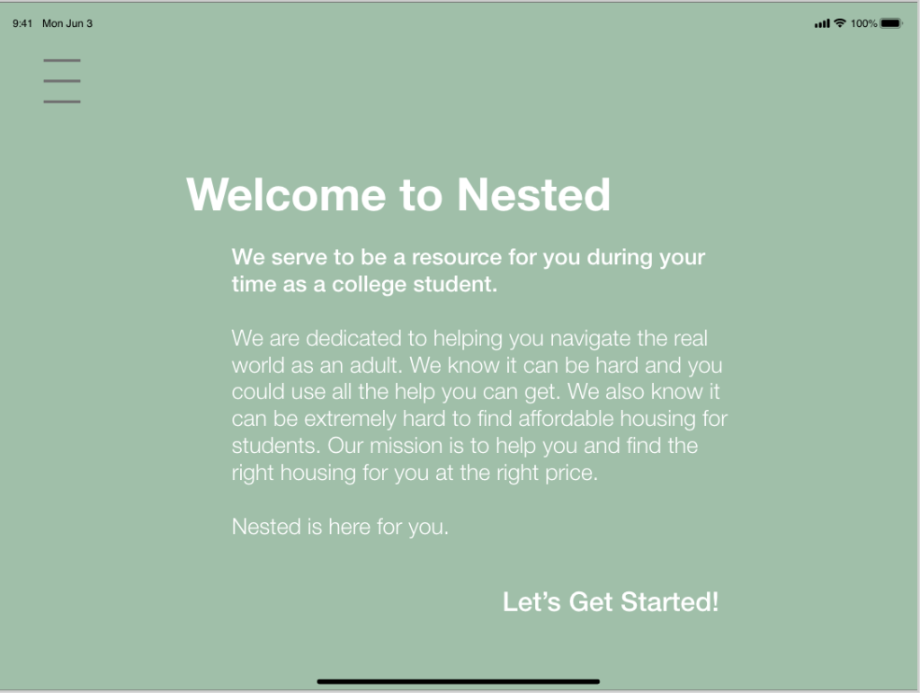 Nested is a platform designed to simplify and enhance the home-buying process, making it more user-friendly. The app provides resources and links for users who may find the home-buying journey confusing, allowing them to compare pricing within their budget. Additionally, Nested offers a feature where users can save past searches for easy retrieval at any time. The overarching goal of the app is to eliminate the intimidating and complex aspects of purchasing a new home, providing a more understandable and enjoyable experience. Nested is specifically crafted for individuals new to the housing market, offering a user-friendly approach to finding a new place to call home.